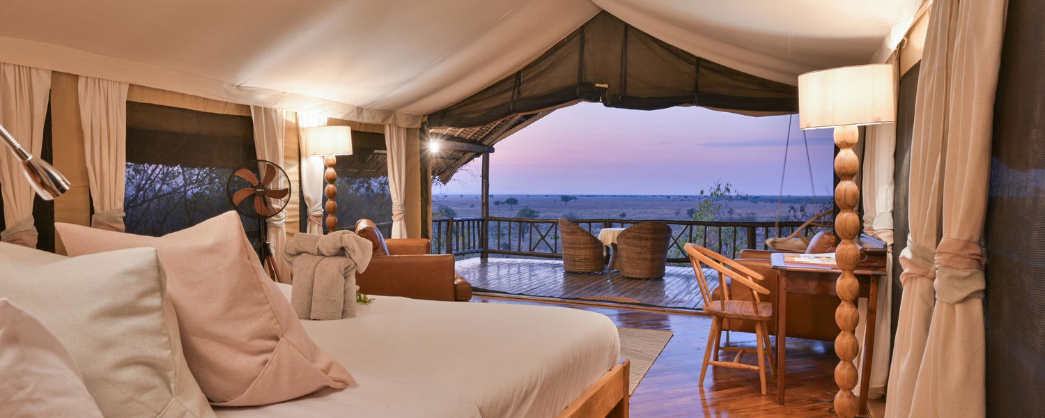 The 12 spacious and airy Meru-style tents generously spaced around the kopje, are each themed around the history of an Explorer or Slave Trader. The tents are pitched on high wooden platforms with traditionally built thatched roofs that provide shade from the sun while you sit on your veranda and enjoy the game around the camp.